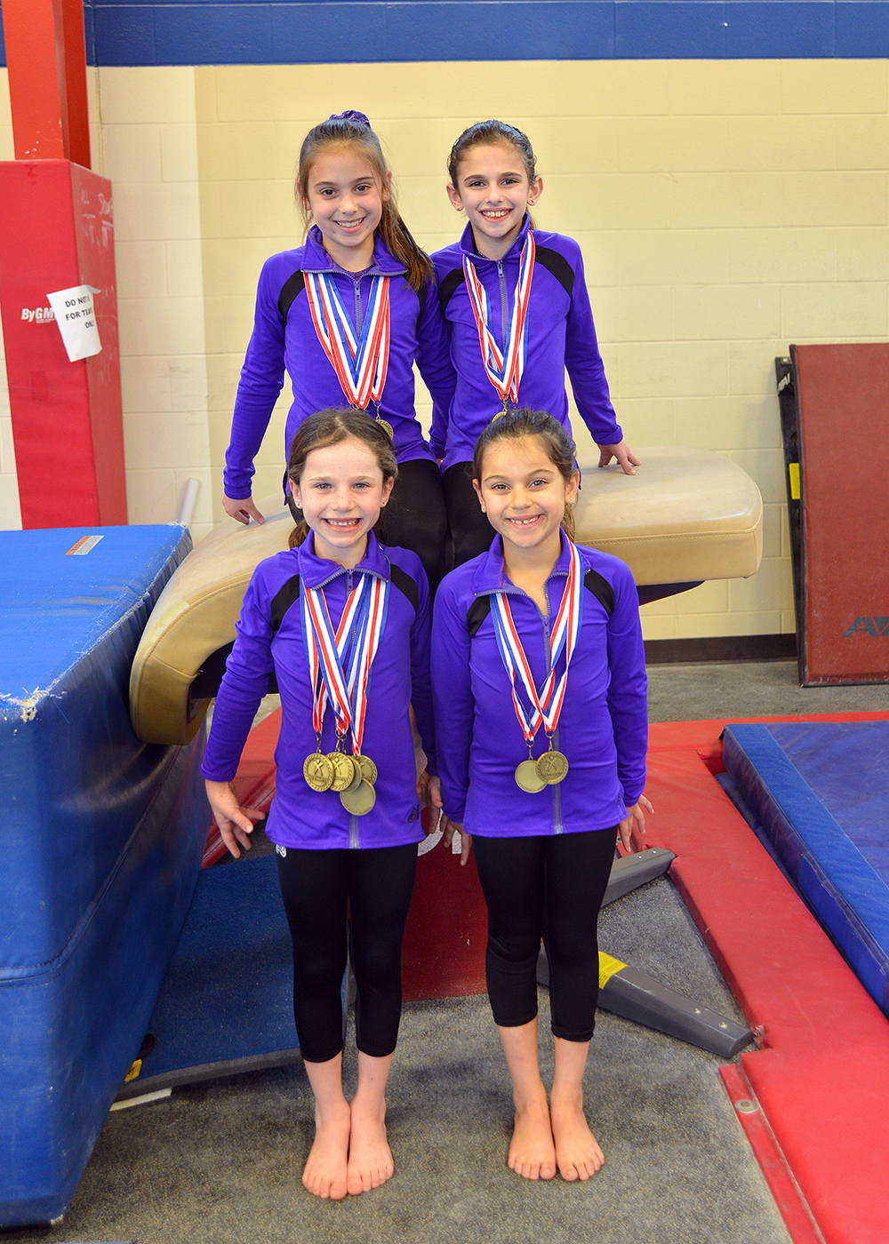 4StateChampions: (Sitting L to R) Romy Ress; Julia Freedman; (Standing L to R) Abby Cohen; Alexa Maslia crowned state champions. Each of them are members of MJCCA’s Perimeter Gymnastics.