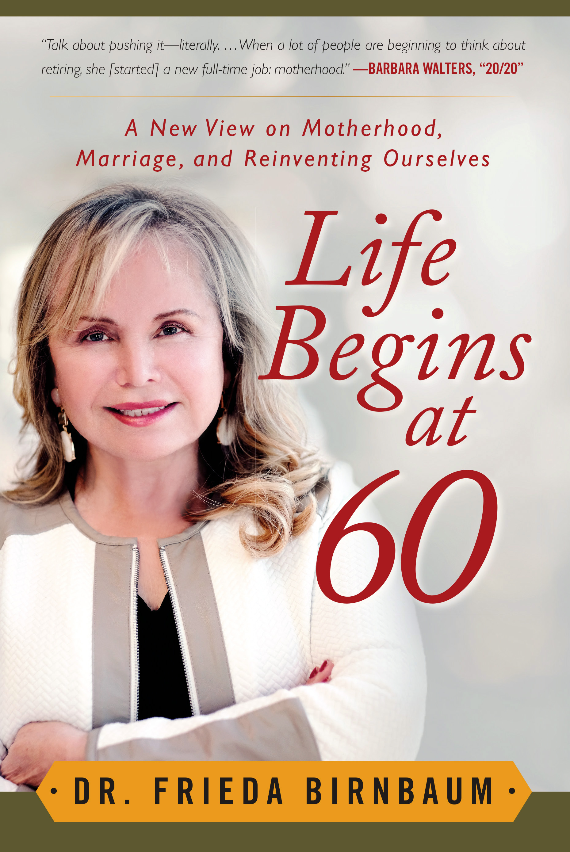 Nine years ago, Dr. Frieda Birnbaum attracted international media attention for setting a national age record for giving birth to twin boys at 60. By all accounts, she broke any definition of motherhood. Leveraging her expertise as a psychotherapist, (a degree she earned in her late 40s), Dr. Frieda has become a sought-after commentator on subjects of gender disparities, equality, and ageism. In her candid memoir, Life Begins at 60, she shares what she’s learned and gained from her experiences as a revolutionary mother, a “bubby,” a devoted wife of 40 years, a psychotherapist, and a daughter of Jewish-Polish immigrants, who escaped the Holocaust. Today, at 68, she proudly embodies her most treasured message: do not fear growing old.