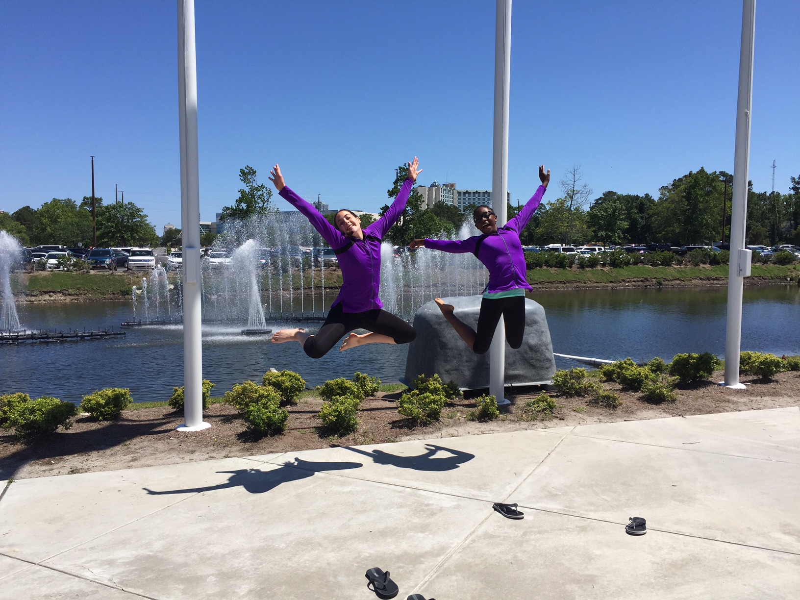 MJCCA’s Perimeter Gymnastics winners (l to r) Hannah Brett and Miyah Jones jump for joy after earning top awards at Xcel Regional Championships, an eight-state competition, held in Myrtle Beach, SC.